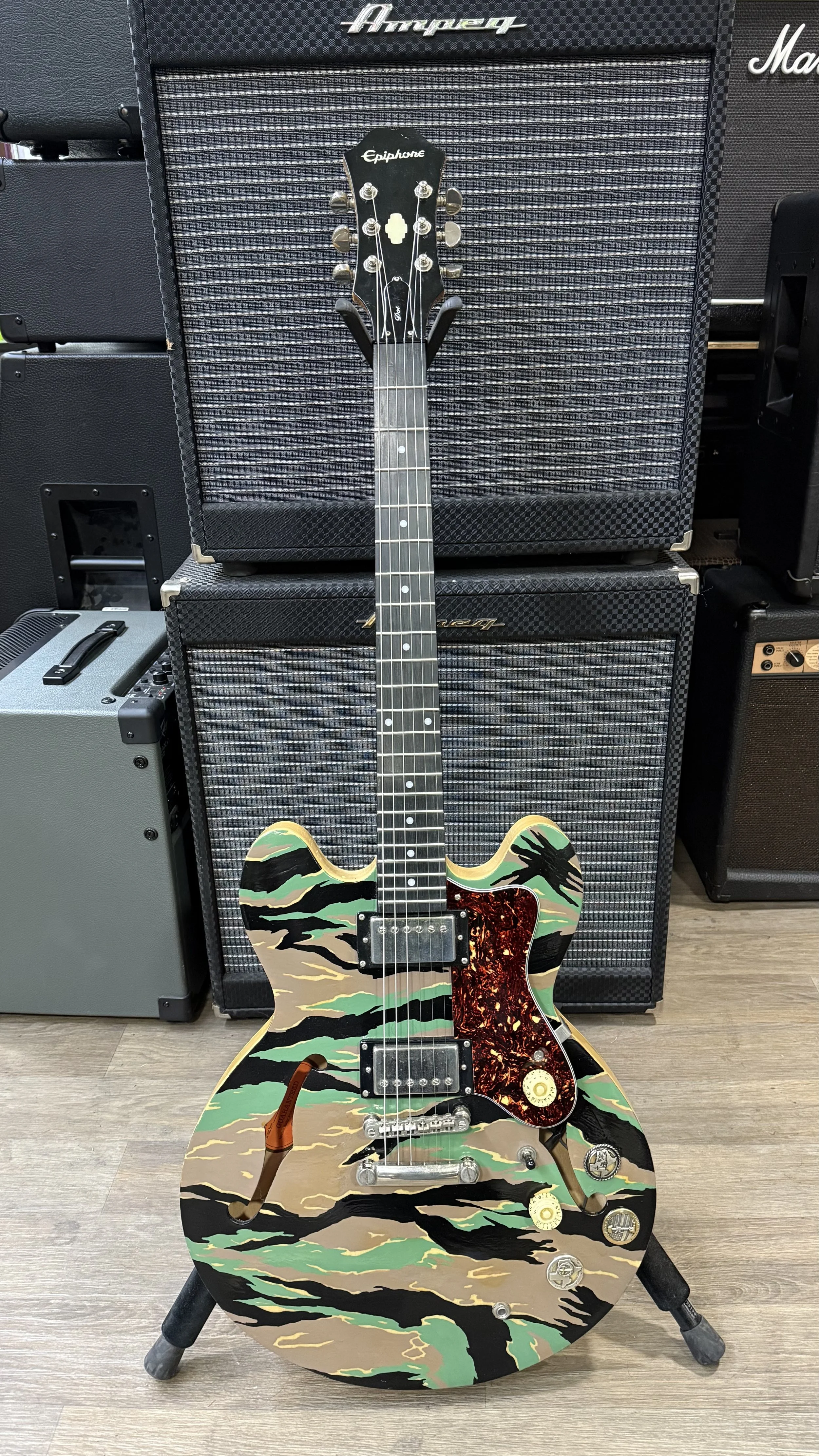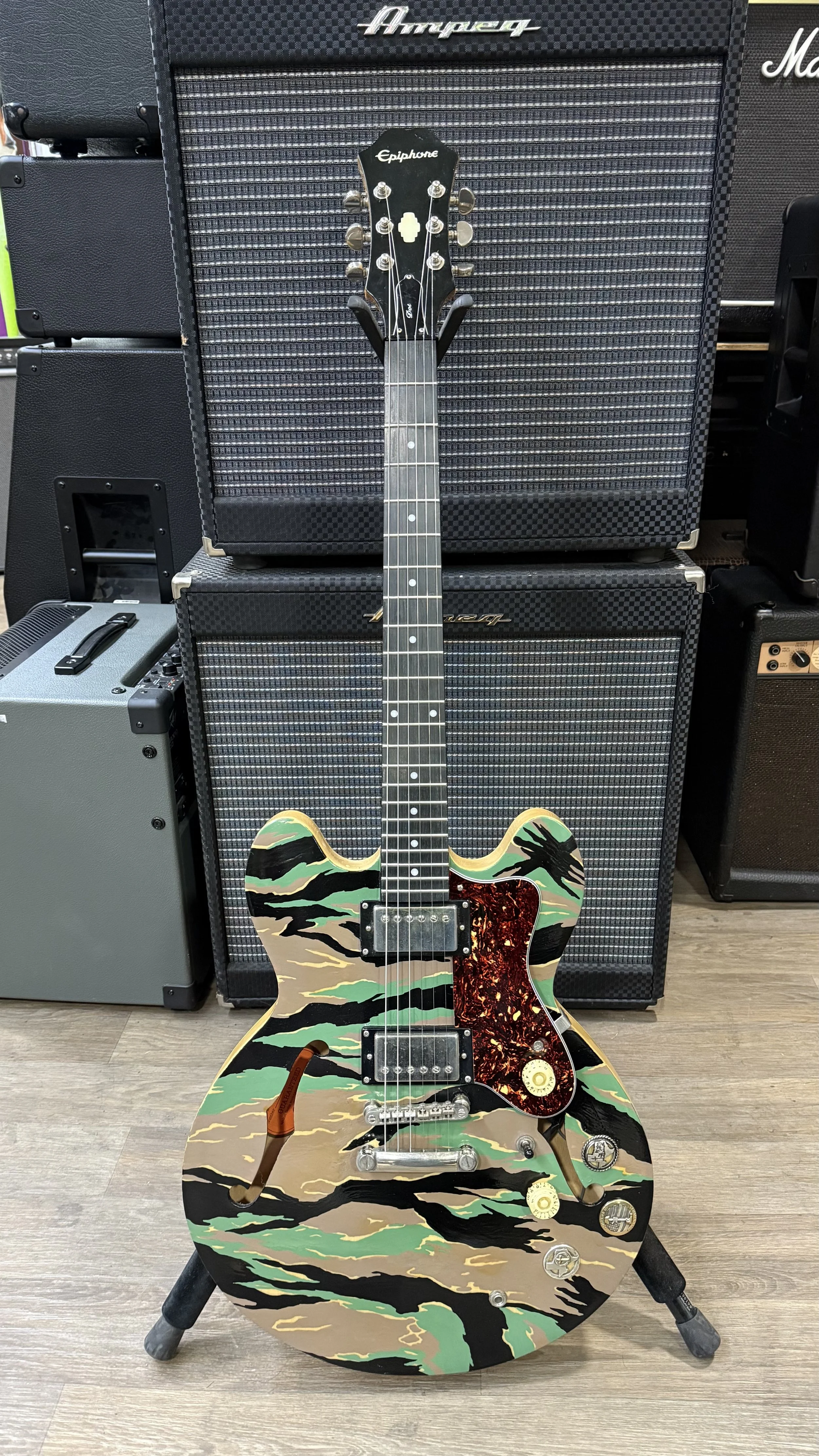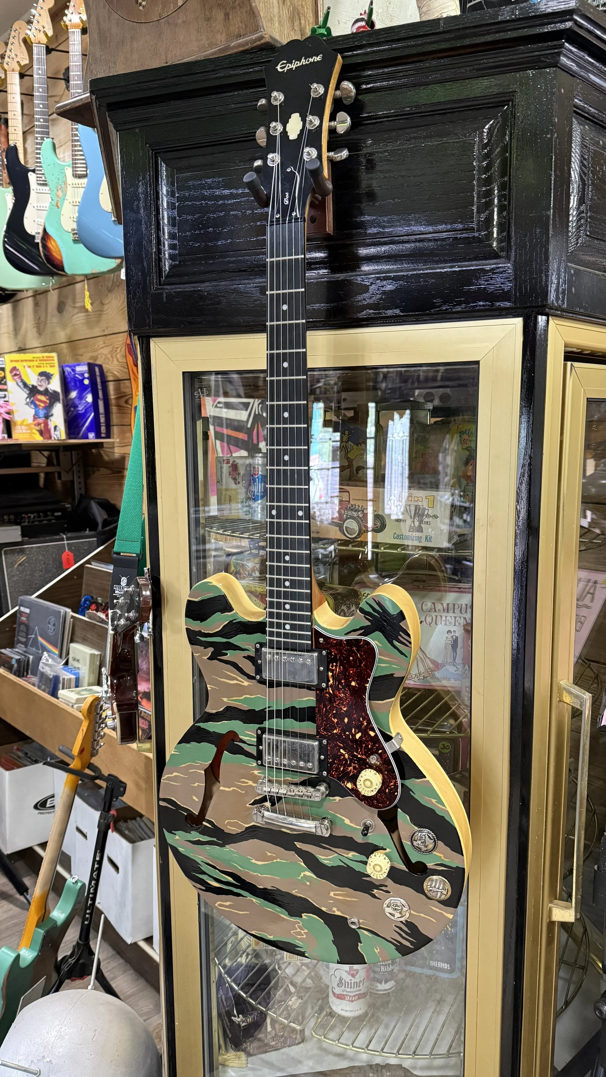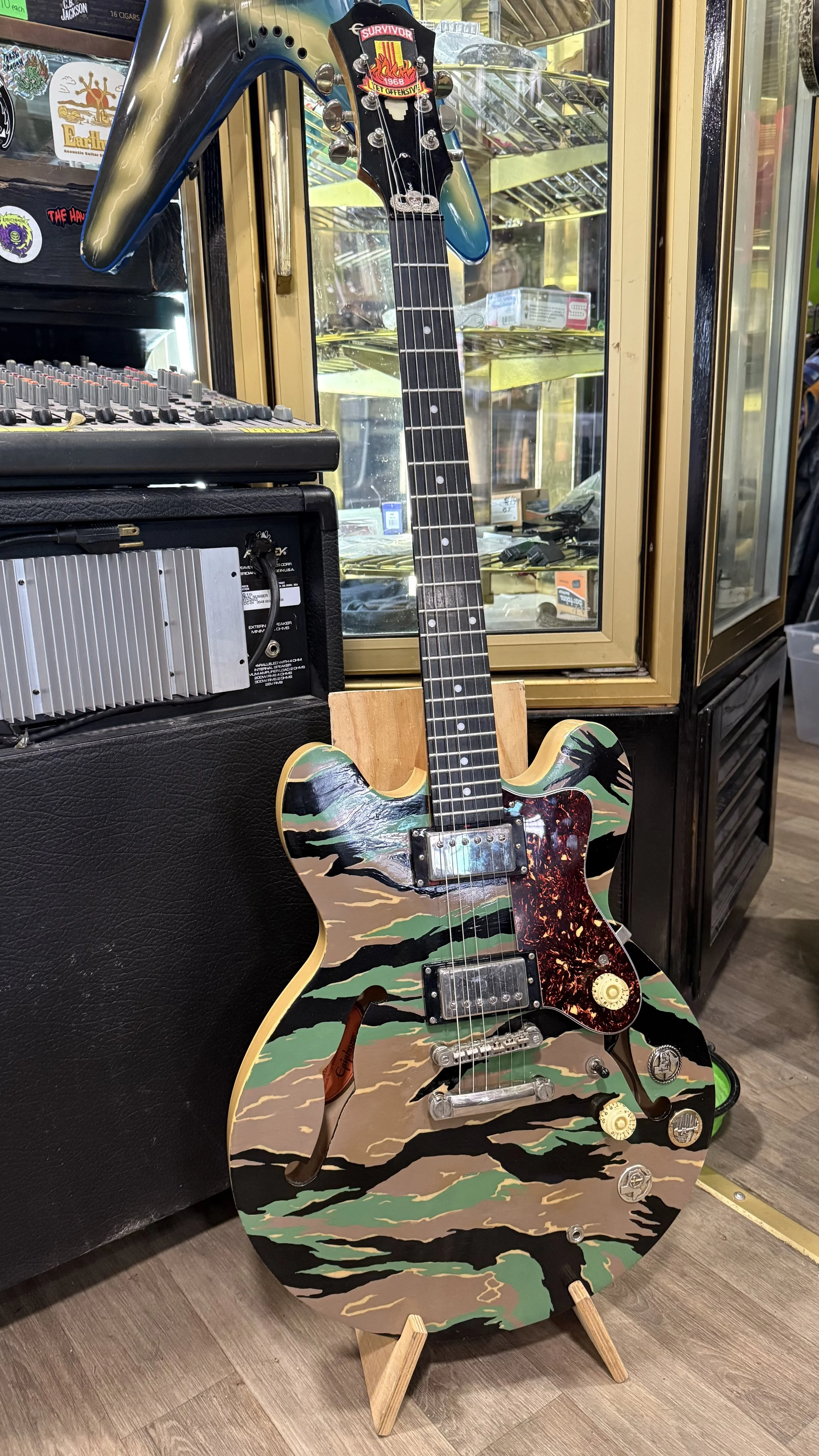 This Dot series Epiphone was custom painted at the request of Johnny Cockerelle, a local legend in the San Antonio music community, to represent his service in the Vietnam War.
